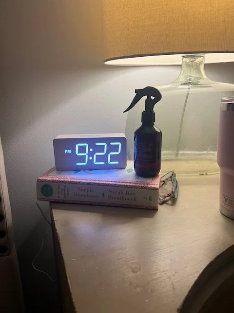 I got an actual alarm clock to put by my bed. I got this one off of Amazon for all of $15 and I honestly like the look. It also has a dimmer so the light does not keep me up at night. This way I no longer use my phone as my alarm, so there is absolutely no reason to have it by my bed. My phone now sits across the room - all of seven steps away - so it is NOT the first thing I reach for in the morning, (so I now do my reading before checking my phone) and it keeps me from scrolling at bedtime (and again reading a book instead).